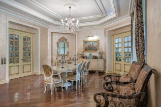Лот: 9915028. Дом с мебелью 1250 кв.м на участке 70 cот. Кол-во спален: 7. Кол-во с/у: 10. Поселок ''Павлово''. Новорижское шоссе, 15 км от МКАД. Без комиссии для покупателя.Уникальная усадьба в классическом стиле с идеальным расположением у леса в поселке ''Павлово'' в 15 км от МКАД по Новорижскому шоссе. Дом построен по индивидуальному проекту, планировочное решение разработано совместно с архитектором Валерием Сеглиным c полным отказом от коридорных систем. Все комнаты первого этажа связаны с гостиной. Ей отведено самое просторное помещение, имеющее форму вытянутого восьмиугольника. Гостиная логически разделена на блоки: обеденный, каминный и зону отдыха. Справа и слева к гостиной примыкают оборудованный рабочий кабинет и зимний сад (соединяет парадную зону и SPA). SPA-зона оснащена бассейном и русской баней с настоящим срубом из дальневосточного кедра. Панорамное остекление открывает вид на террасу и участок, за счёт чего гостиная всегда наполнена светом. Стены покрыты декоративной штукатуркой светло-бежевого оттенка, в тон подобраны мебель и камин из травертина. Фрески выполнены профессиональным художником. Пастельные тона делают интерьер мягким, лёгким и служат напоминанием о Провансе, где хозяева часто бывают и откуда привезены картины для этого дома. Яркие цветовые акценты появляются в интерьерах второго этажа. Тут находятся хозяйская и три детские спальни. Шторы в доме сшиты из шёлка и шелкового бархата и привезены из Италии. Вся мебель в доме выполнена ведущими производителями из Италии и Америки. Диваны представлены эксклюзивным брендом Zanabony, а кухня итальянским брендом Ca dOro. Зеркала привезены из Венеции, картины из Франции, а вазы и предметы декора из Марокко. Антикварным достоянием дома являются камин из травертина и швейцарский гобелен над ним XIX века.Для декора использовали исключительно природные материалы. Для холлов и ванных комнат подобран мрамор нескольких сортов, в бассейне пол декорирован африканским сланцем, а мозаика выложена известным художником по индивидуальному заказу. Во всех жилых помещениях паркет из американского ореха, а фасад самого особняка обшит песчаником. Потолки украшает гипсовая лепнина, выполненная по авторским эскизам. Итальянские люстры из муранского стекла.Цоколь: бойлерная, электрощитовая, кладовая, постирочная, тренажерный зал, бильярдная, бар, винный погреб, кинотеатр, помещение для обслуживания бассейна,1 этаж: прихожая, гардеробная, холл, гостиная, кухнястоловая, кладовая, кабинет, зимний сад, терраса, бассейн 14.5 метров, русская баня, раздевалка, гостевая спальня, гардеробная, с/у,2 этаж: холл, мастер-спальня, санузел, гардеробная, 3 спальни со своими с/у, игровая, балконы,Мансарда: спальня с с/у, спальня, с/у, кладовая, гардеробная.Дом для персонала: кухня-гостиная, спальня, санузелКрасивый лесной участок 70 соток, с ландшафтным дизайном, более 200 деревьев. На участке расположены: основном дом, гараж на 4 м/м, дом для персонала, домик охраны. Отдельно расположены: зона барбекю с летней кухней, беседка, игровой домик, баскетбольная площадка, фонтан, уличное освещение Франция.Близость к Москве и удобная транспортная доступность одно из его преимуществ. В поселке центральные коммуникации и многоуровневая охрана. В пешей доступности от поселка находятся: многофункциональный торгово-развлекательный 