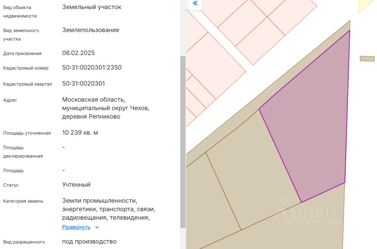 Кадастровый номер 50:31:0020301:2350.