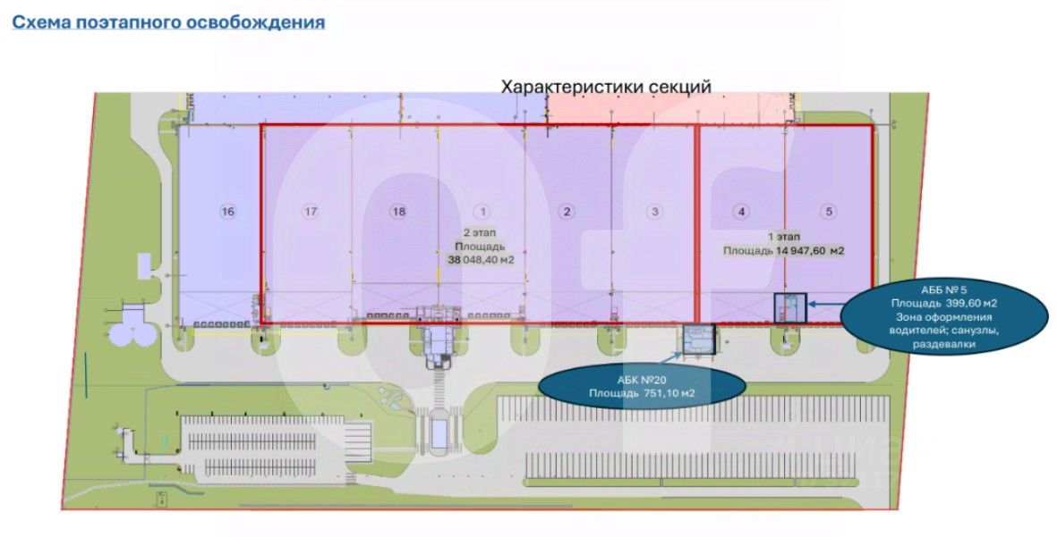 Зона опасных товаров: 4 387 кв. м зона горючих товаров 980 кв. м зона моторных масел -1 227 кв. м Зона хранения шины 2 180 кв. м