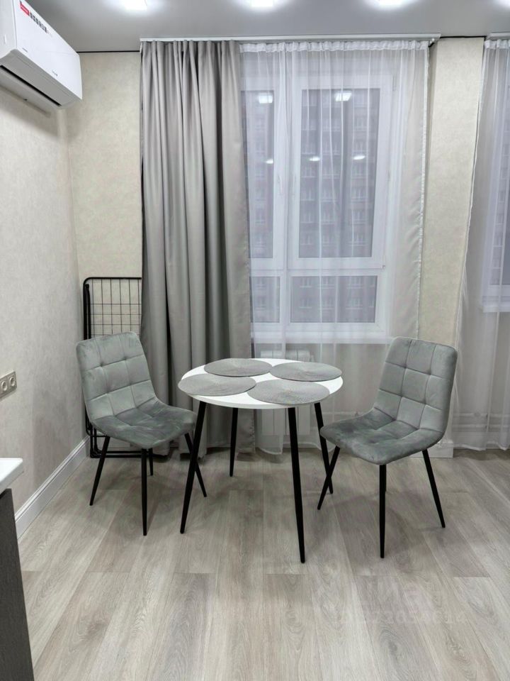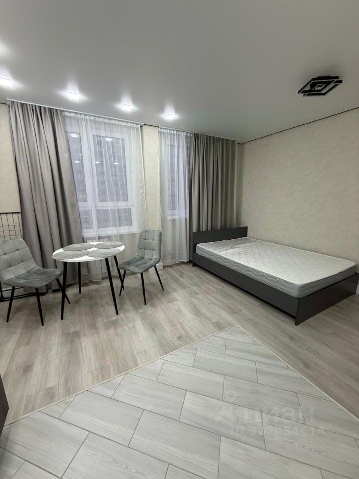 В квартире выполнен качественный евроремонт. Пространство студии можно обставить всем необходимым по Вашему запросу. Современная техника — кондиционер, холодильник, стиральная машина уже установлены в квартире .Санузел совмещённый, оборудован душевой кабиной. Окна выходят во двор, что обеспечивает тишину и спокойствие.