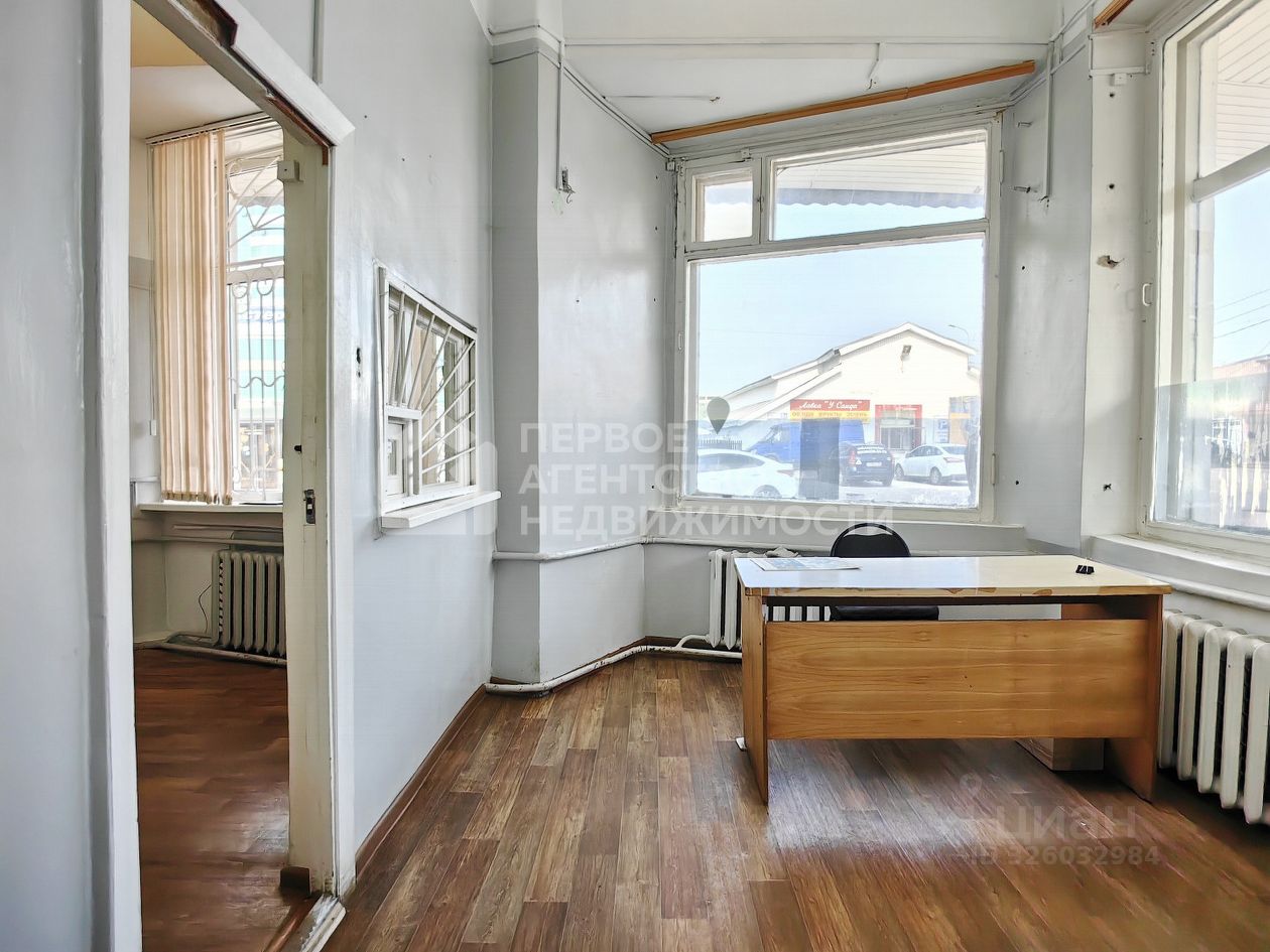 Помещение состоит из длинного холла, двух кабинетов с витражным остеклением и двух санузлов, один из которых можно переоборудовать под свой бизнес. Отдельный вход с улицы. Соседнюю часть здания занимает магазин хозтоваров. В помещении раньше располагалась касса автостанции.