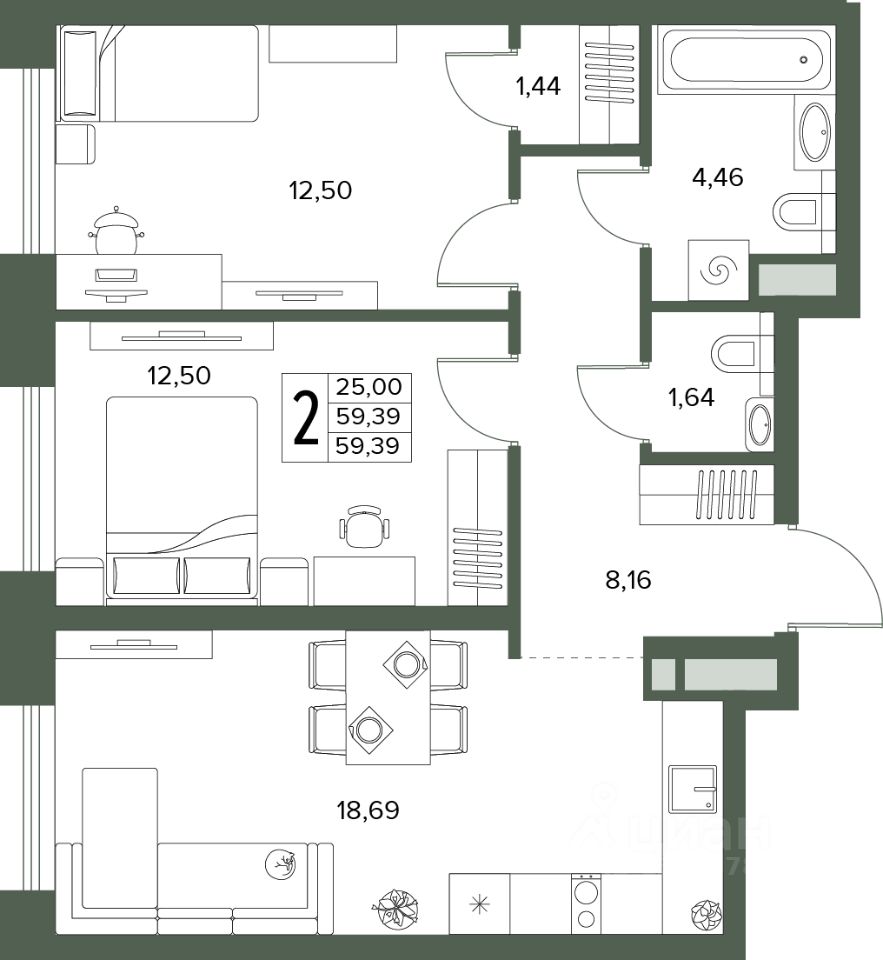Общая площадь59,39 м2