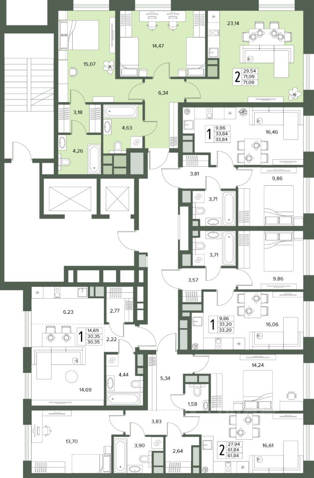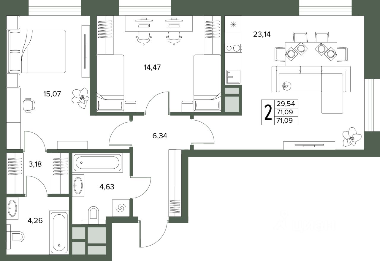 Общая площадь71,09 м2