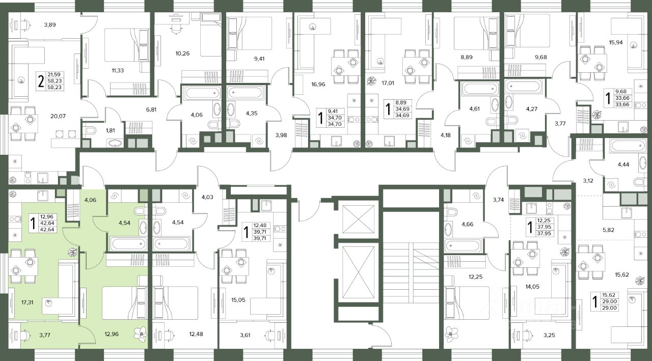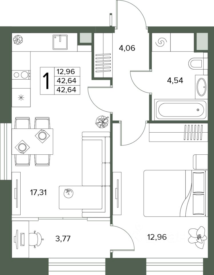 Общая площадь42,64 м2