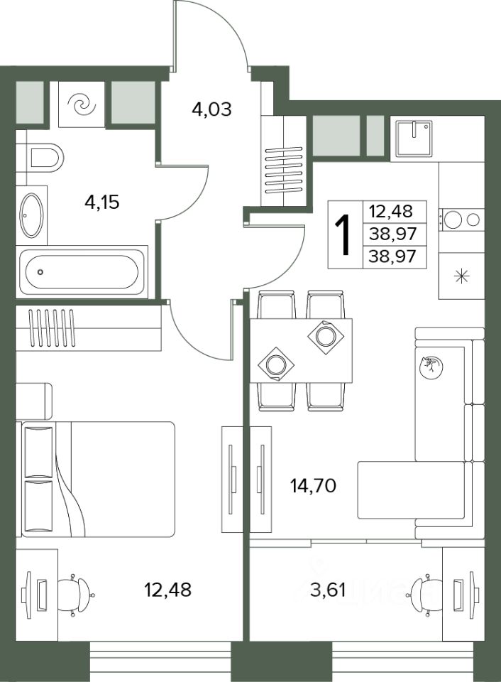Общая площадь38,97 м2