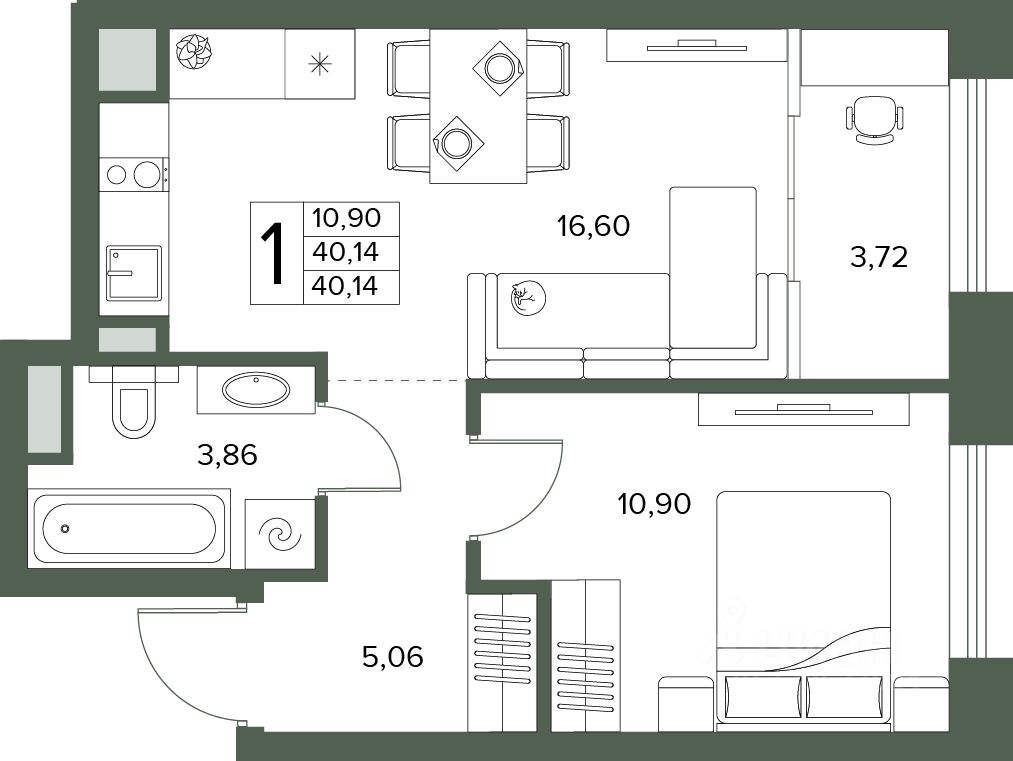 Общая площадь40,14 м2