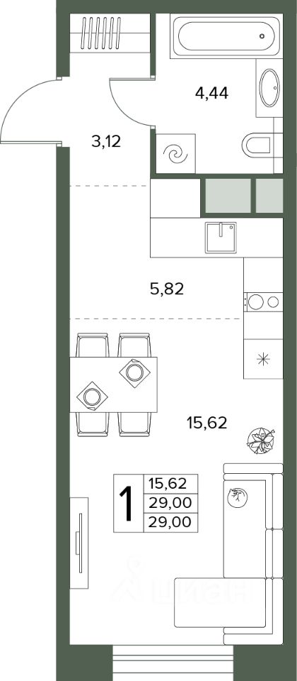 Общая площадь29 м2