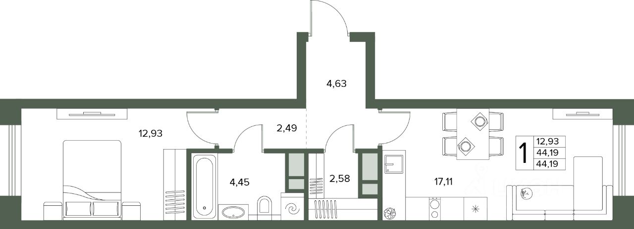Общая площадь44,19 м2