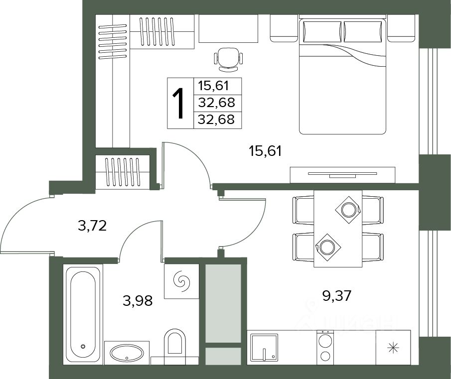 продам 1-к, Академпарк кп (Серпухов городской округ)5 542 528 ₽