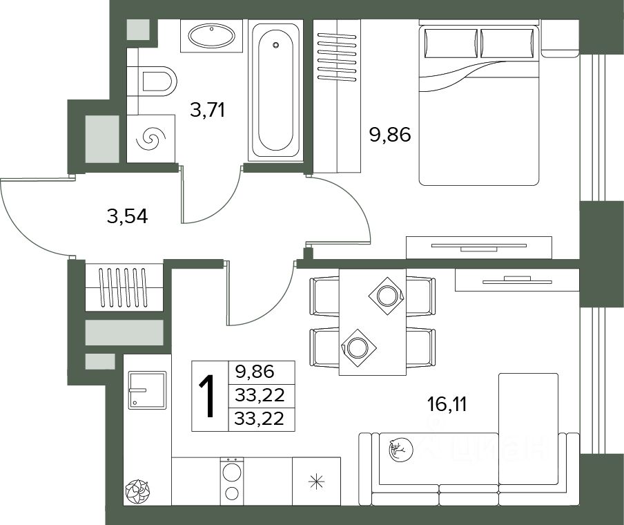 Общая площадь33,22 м2