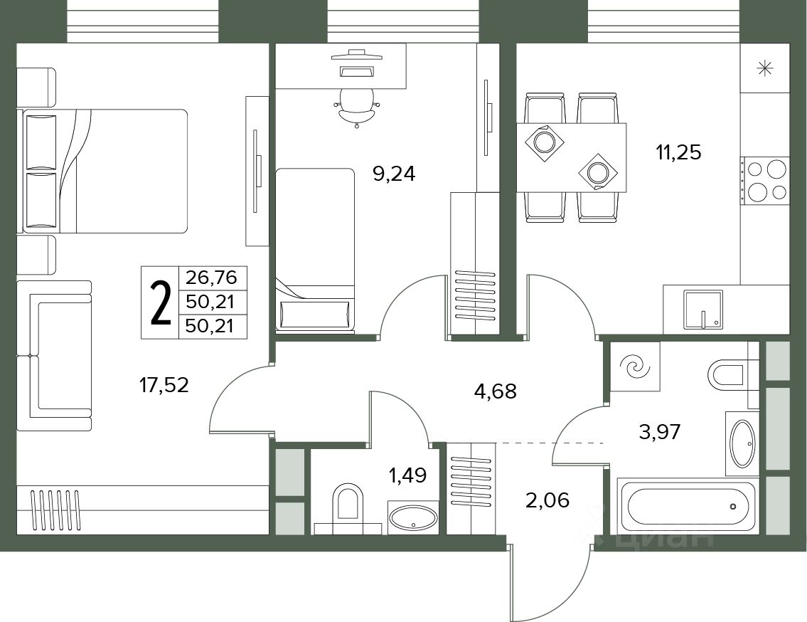 Общая площадь50,21 м2