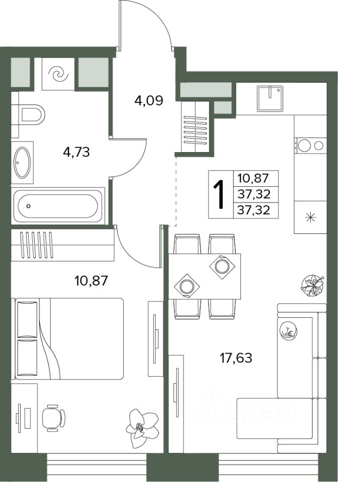 Общая площадь37,32 м2
