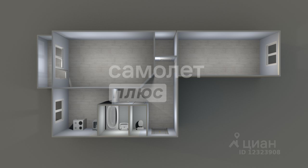 Общая площадь 44,3 м2.